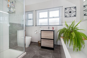 The house also includes a modern bathroom, complete with a bath, vanity, shower, and toilet. An additional facility in the form of a separate laundry, as well as a second toilet, ensures everyday convenience.