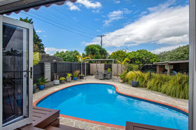With its impressive street appeal, the home welcomes you into a light-filled living area, beautified by crisply painted interior and natural timber floors throughout. The living space encompasses a stylish kitchen, dining room, and lounge that connect seamlessly to a beautiful pool area, courtesy of bi-fold doors. An adjacent covered zone presents a lovely spot for relaxed barbecues or lively gatherings.